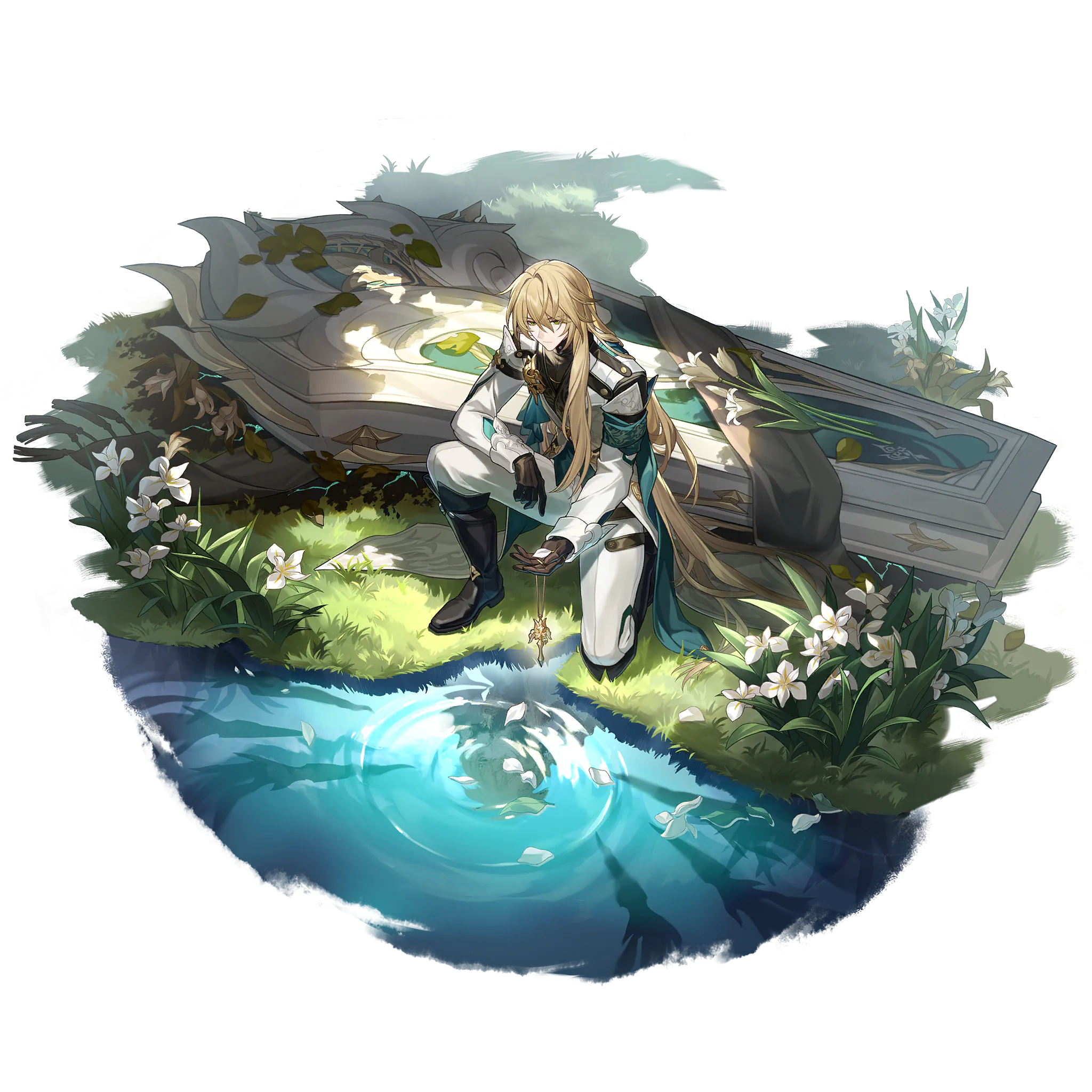 Carrying a coffin wherever he goes, he is a foreign trader who came from beyond the stellar seas. Has excellent medical skills.